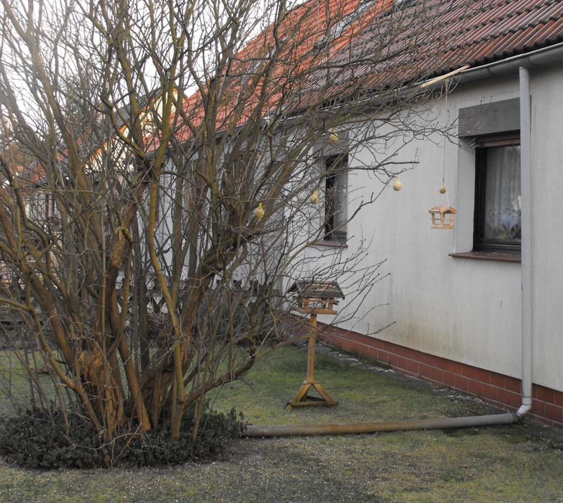 Vögel sind da immer. Die Spatzen nisten unter der Regenrinne, der Flieder hilft auch.